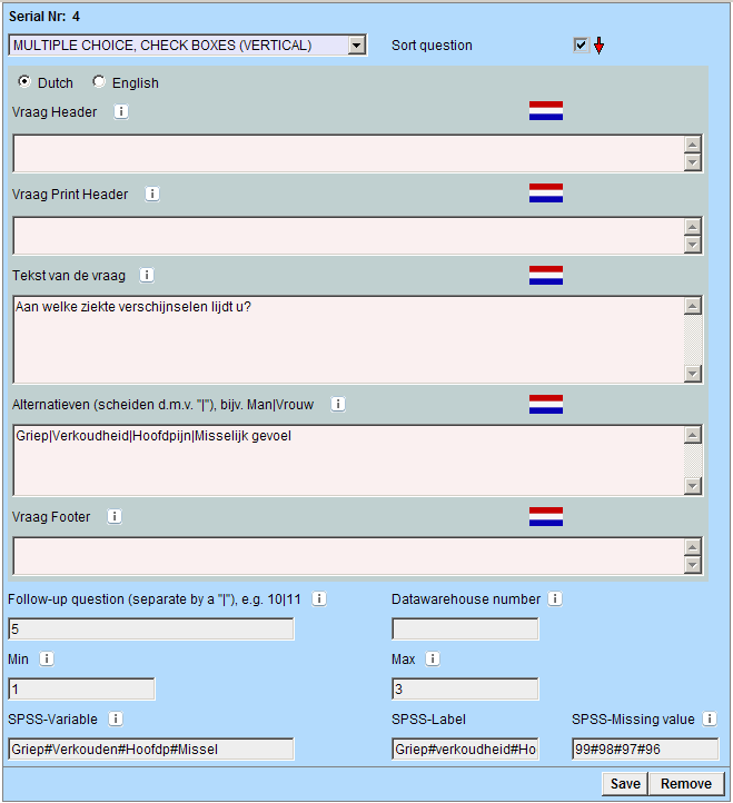 In de nieuwe versie is voor iedere checkbox een eigen vaiabel naam, label naam en missing value mogelijk.