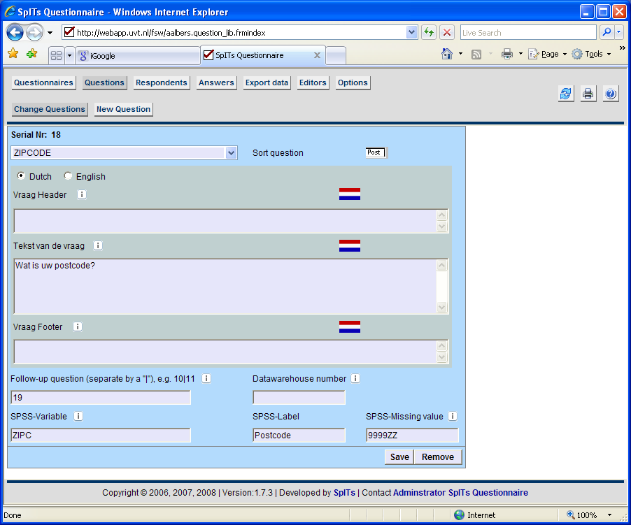 De ZIP code vraag wordt alsvolgt ingevuld: